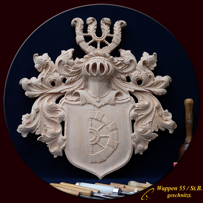 Unter anderem hat er sich auf das Gestalten, Schnitzen und fassen von Wappen aller Art spezialisiert. Seine Wappen sind mit Liebe zum Detail kunstvoll von Meisterhand geschnitzt. Er fertigt jedes Wappen in jeder Art und gewünschten Größe und bereichert somit seine adeligen Kunden die bürgerlichen Familien von Heute über die Zeit hinaus mit einem sichtbaren Zeichen. Ein Zeichen für Familie und Zusammenhalt vererbbar von Generation zu Generation, denn ein Wappen ist wie ein wertvolles Dokument.