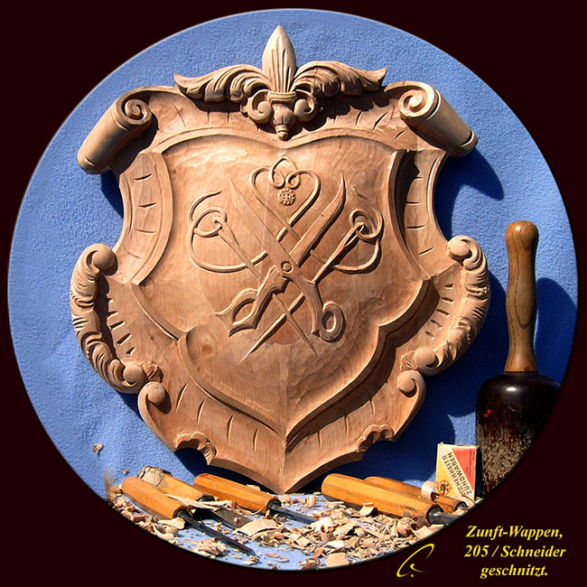 Zunft - Wappen - Schneider geschnitzt, naturbelassen.