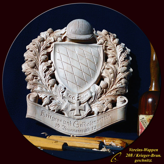 Vereins - Wappen Krieger-Brunnenreuth 208geschnitzt, naturbelassen.