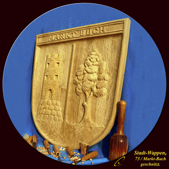 Stadtwappen / Markt-Buch - 73 - geschnitzt, naturbelassen.