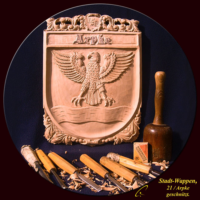 Stadtwappen / Arpke- 78 - 77a - geschnitzt, naturbelassen.