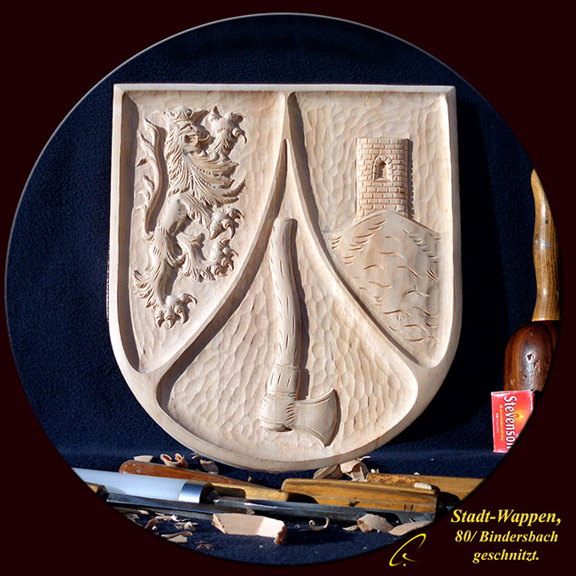 Stadtwappen Bindersbach /80- geschnitzt, naturbelassen.