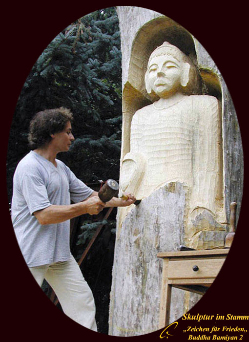 wird eine Nachempfindung des gr. Buddhas von Bamiyan gestaltet in einem 5 Meter hohen Baumstamm, als ein Zeichen für den Frieden zwischen den Kulturen und den Konfessionen