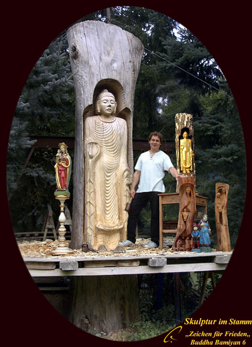 wird eine Nachempfindung des gr. Buddhas von Bamiyan gestaltet in einem 5 Meter hohen Baumstamm, als ein Zeichen für den Frieden zwischen den Kulturen und den Konfessionen