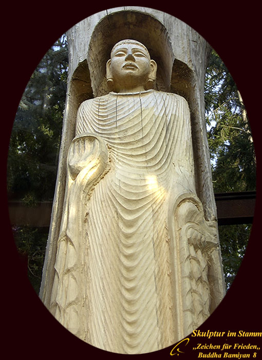 wird eine Nachempfindung des gr. Buddhas von Bamiyan gestaltet in einem 5 Meter hohen Baumstamm, als ein Zeichen für den Frieden zwischen den Kulturen und den Konfessionen