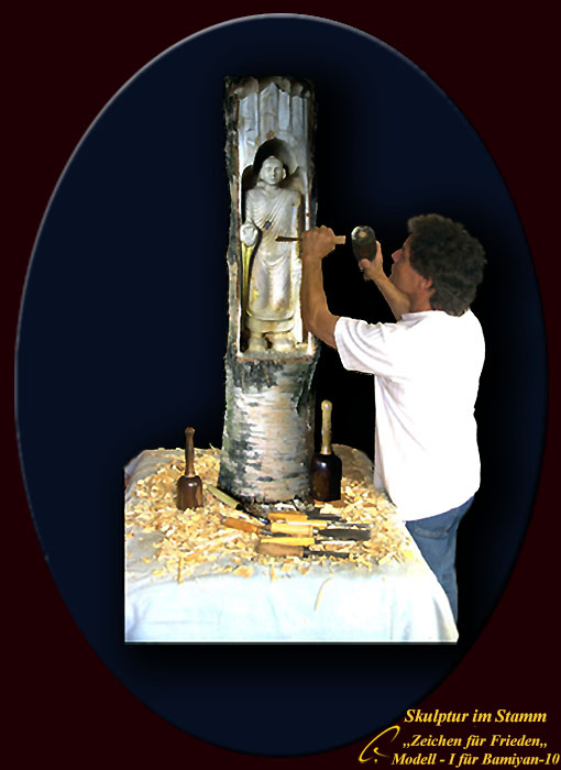 wird eine Nachempfindung des gr. Buddhas von Bamiyan gestaltet in einem 5 Meter hohen Baumstamm, als ein Zeichen für den Frieden zwischen den Kulturen und den Konfessionen